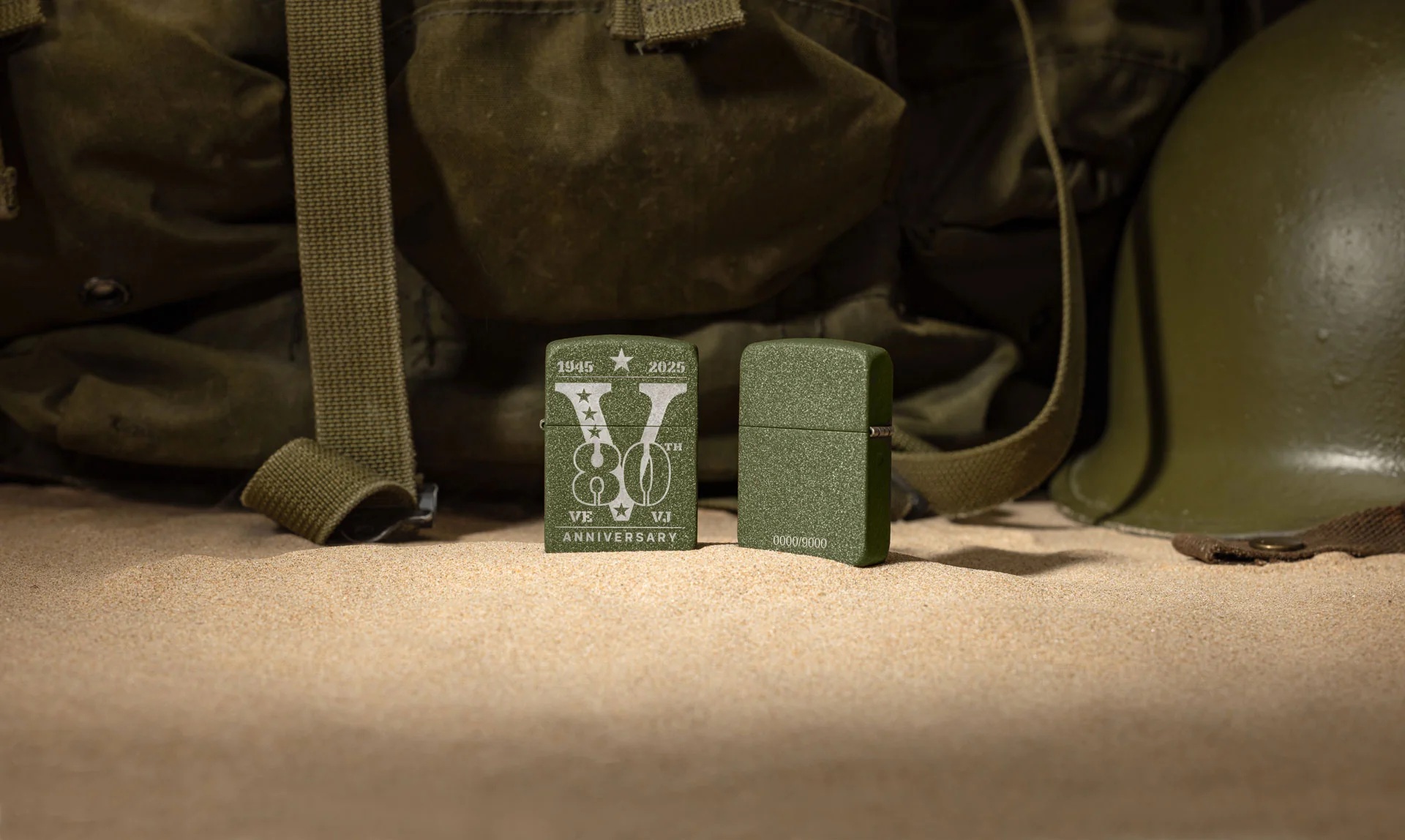 2025 jährt sich zum 80. Mal das triumphale Ende des Zweiten Weltkriegs, an das Zippo mit diesem limitierten Sammlerstück stolz erinnert. Das speziell für diesen Anlass aus Stahl gefertigte Modell 1941 Replica ist eine Hommage an die Feuerzeuge, die amerikanische Soldaten während des Krieges bei sich trugen, und verfügt über ein lasergraviertes Jubiläumsdesign und eine erstmals verwendete Green Crackle-Oberfläche. Jedes der 9.000 nummerierten Sammlerstücke wurde zu Ehren dieses historischen Jubiläums hergestellt.